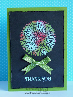 This card uses the lovely Betsy’s Blossoms stamp set and coloured embossing powders – but more on this in an upcoming post!