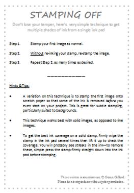 Here’s an example of my ‘Stamping Off’ instruction card with the sample side stamped: