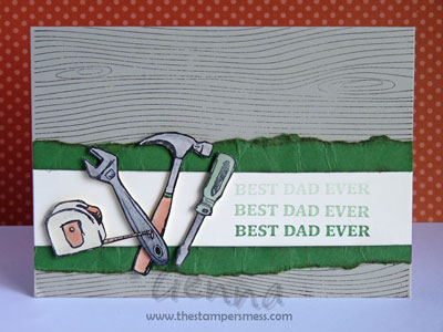 This one uses the now retired Totally Tools, but the greeting is from Best Dad Ever, which is still available (page 27), and it’s stamped in Garden Green.